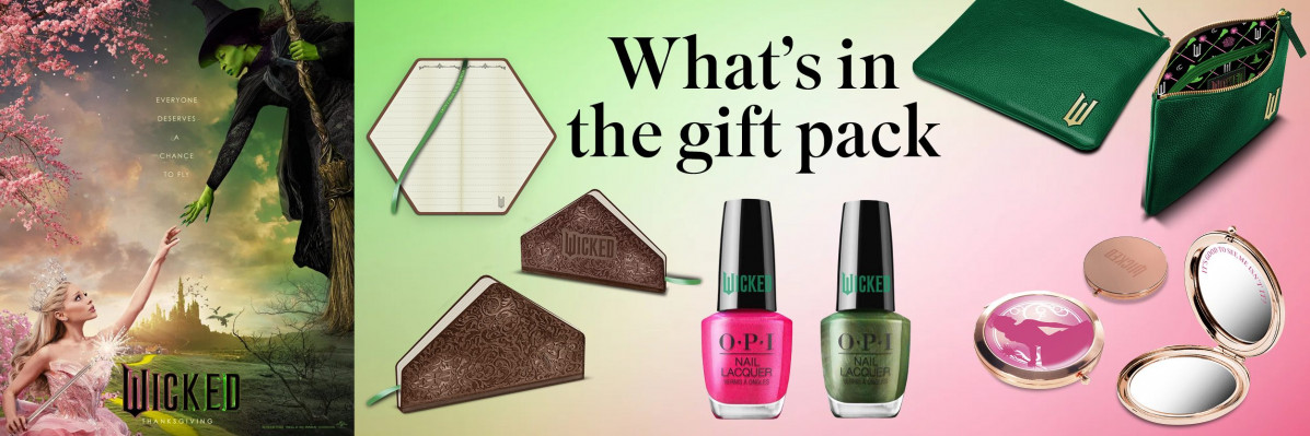 And for your chance to win 1 of 3 double passes to see the film as well as a WICKED prize pack that includes a makeup pouch, a compact mirror, OPI nail polish and a grimmerie notebook, simply enter your details in the form below!