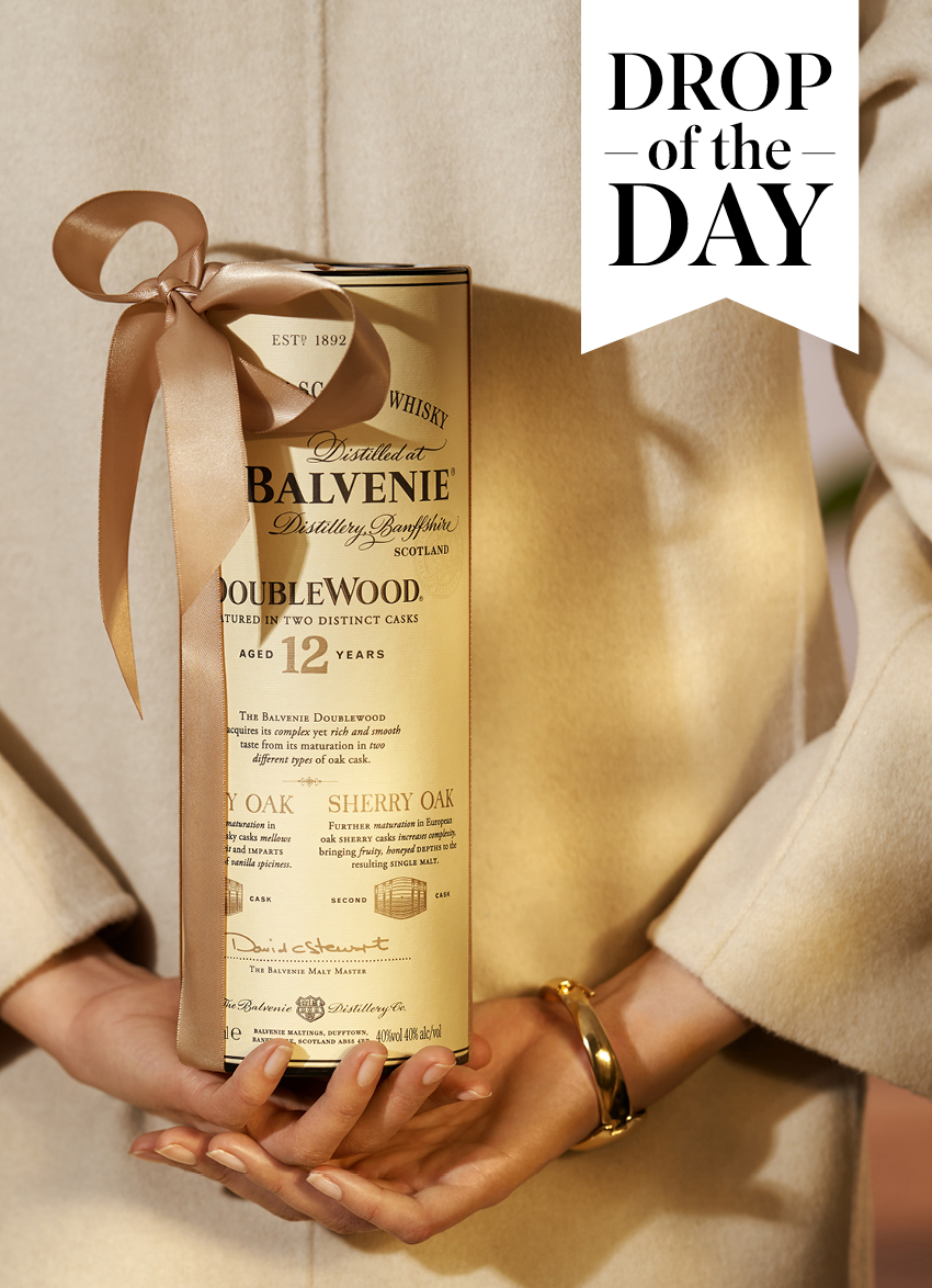 Hailing from Speyside, where The Balvenie still grows and malts its own barley, with casks built by hand and immense care in every detail, DoubleWood was developed under Malt Master David Stewart, pioneer of the finishing technique. The expression now foundational to modern Scotch whisky.