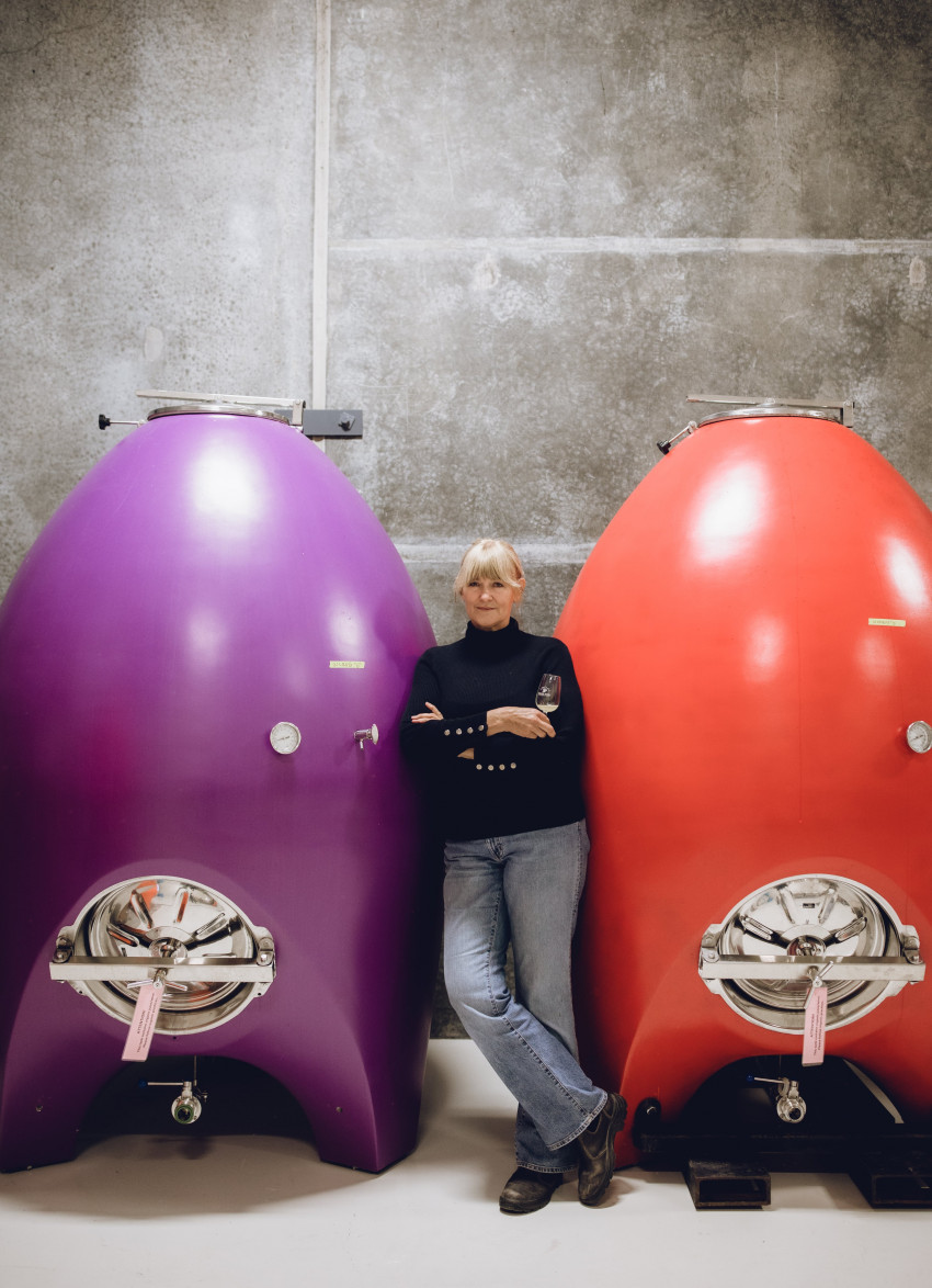 Nicknamed the ‘Teletubbies’ by the winery team, the Loveblock concrete egg collection has grown from their original orange egg and now boasts purple, red, black, bottle green and white eggs. These vessels add an exciting new dimension and shape. Because they are oval and have no corners, fluid dynamics causes the continuous movement of the wine as it ferments on wild yeasts. This gentle mixing of the wine during fermentation or ageing produces a more complete and complex wine.