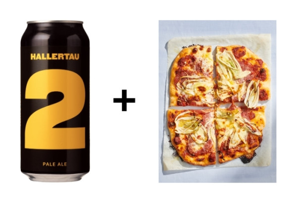 Hallertau #2 Hallertau Pale Ale Zesty lemon hops and a rich malty base complements the punchy flavours of our Fresh Fennel, Salami and Chilli Pizza. |