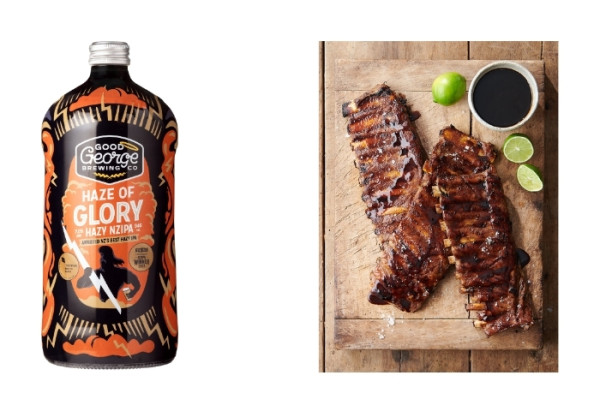 Haze of Glory Good George Hazy IPA Sweet fruit and citrus notes, a malty backbone and bitter finish make this hazy the ideal companion for our Sticky Tamarind and Maple Syrup Glazed Pork Ribs. | |