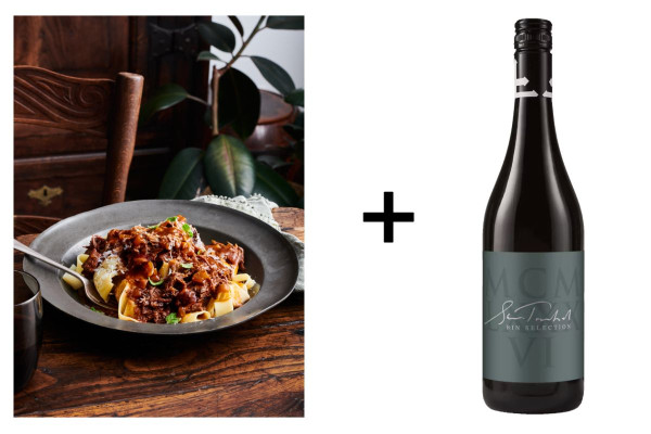 Slow-Cooked Beef Cheek Ragú with the succulent Trophy-winning, 96pt Bin Select Shiraz Durif Grenache from Sam Trimboli.