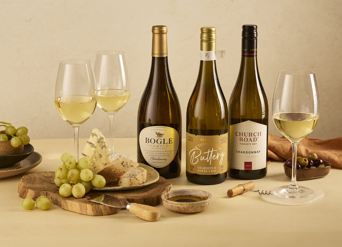 Chardonnay is a step up from Prosecco in intensity of flavours and in alcohol. It is a dry wine and more complex. Styles can vary from crisp, citric and mineral through to buttery, peachy, tropical and full-bodied. It is also the only white wine that is traditionally fermented in toasted oak barrels. The origin of the oak lends character to the wine. For example, closely grained French oak typically gives spicy, nutty characters; American oak tends to be wider grained and gives toasty vanilla and coconut vibes (think bourbon); and new oak gives more oomph to the wine than an aged barrel.