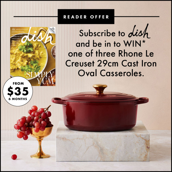 No issue of dish would be complete without one of our epic subscriber giveaways. This time, our subscribers have the chance to win one of three Rhone Le Creuset 29cm Cast Iron Oval Casseroles, each valued at $770. Our current subscribers are already in the draw, but if you’re not subscribed, click here now and be in to win.