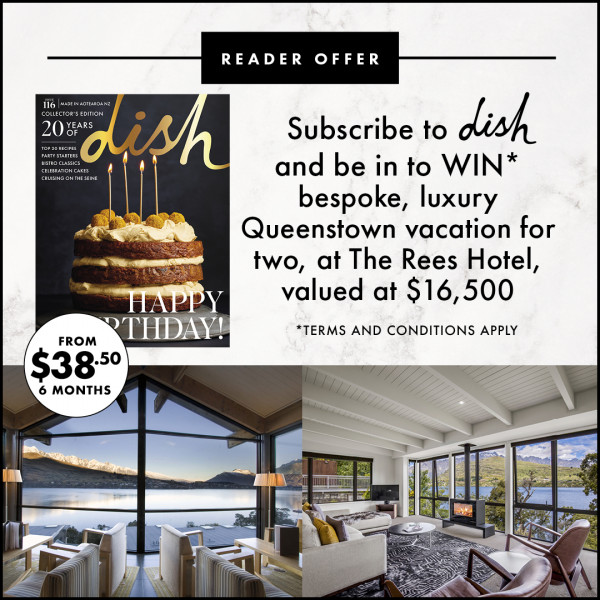 No issue of dish would be complete without one of our epic subscriber giveaways. This time, our subscribers have the chance to win a bespoke, luxury Queenstown vacation for two, at the Rees Hotel, valued at $16,500. Our current subscribers are already in the draw, but if you’re not subscribed, click here now and be in to win.