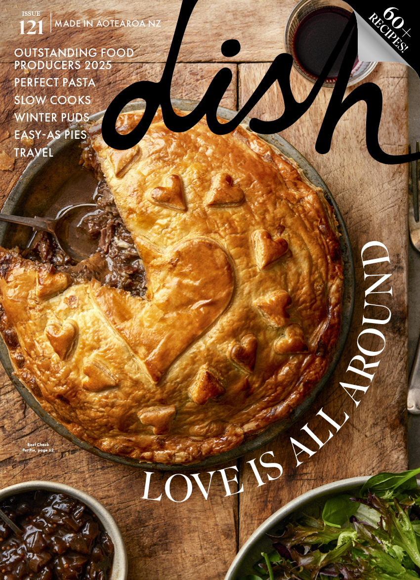 As winter arrives, so does the latest issue of dish! With over 60 recipes this edition features seasonal produce like pumpkin, leeks and silverbeet whipped into delicious dinners. Pasta takes centre-stage in 5 outrageously tasty recipes, then we break out the slow cooker and amp up the comfort with cozy roasts and braises. Winter wouldn’t be the same without a hearty pie or two, and we have a selection – from Beef Cheek Pot Pie to Moroccan Shepherd’s Pie. Food Fast has your speedy weeknight dinners covered then Melie brings the magic with inventive chicken dishes while Olivia’s baking and desserts will brighten the even the coldest days.