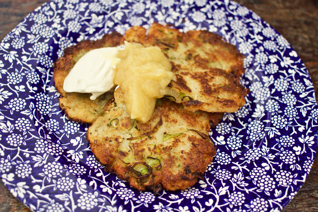I was browsing through the recipes skim-reading the little descriptions at the top of the page, as I like to do when I'm trying to decide on recipes, when suddenly I saw the words "apple sauce and doughnuts" in the same paragraph as "potato cakes" (latkes)? Apparently, Ashkenazi Jews often eat latkes with apple sauce, served alongside Sufganiyot (a traditional doughnut) over Hanukkah. Christmas may be long gone, but any excuse to get a head start on festive fare, right?