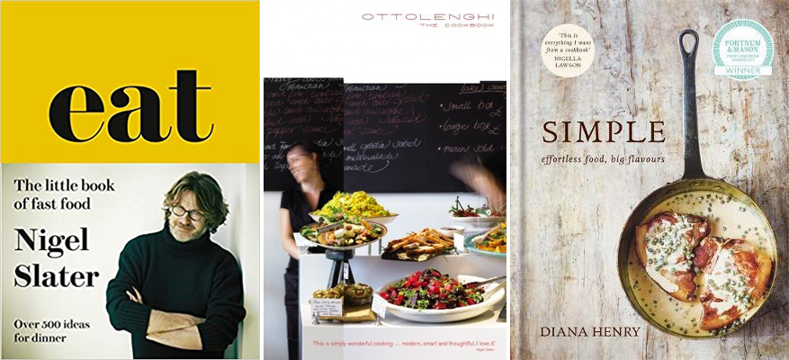 Eat by Nigel Slater, Ottolengi: The Cookbook by Yotam Ottolengi and Simple by Diana Henry