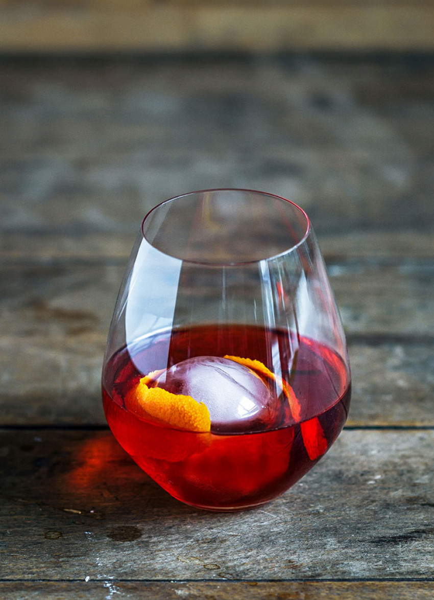 We know what we like and, for us, the cocktail is to be traditionally made: equal parts red vermouth, Campari and gin – all of good quality, of course – and to be served in a short glass with a singular large cube of ice. The rim of the glass should taste of citrus and we appreciate a good coil of orange peel. Perfection.
