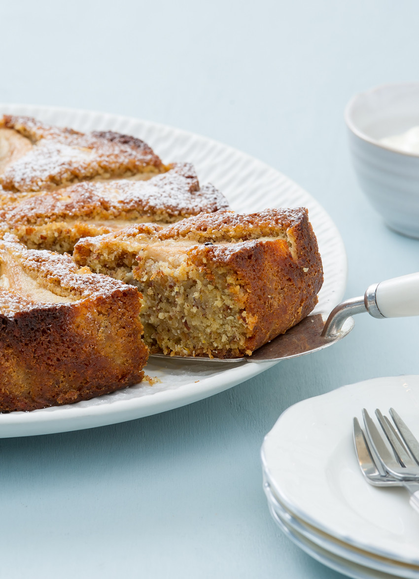 For morning tea: Fresh Pear, Coconut and Roasted Almond Cake (Gluten Free)