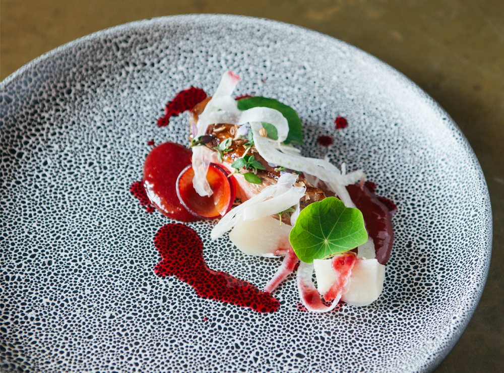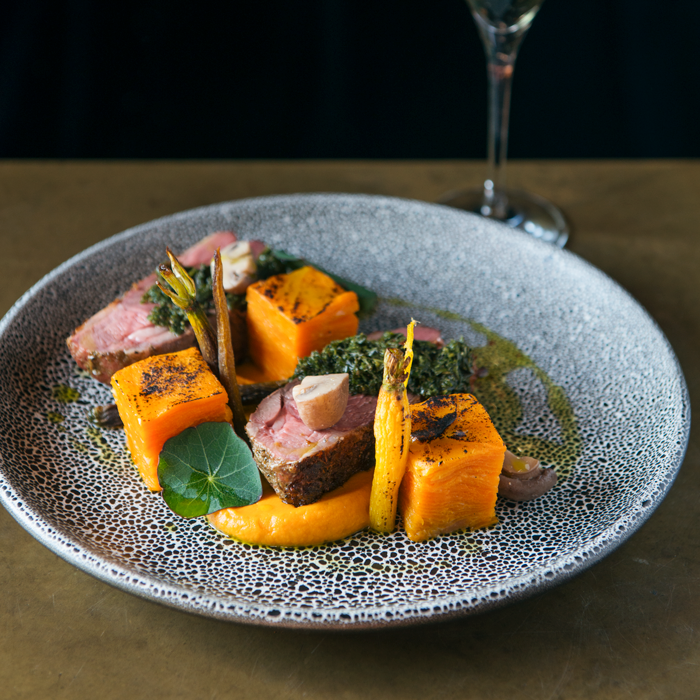 Our high expectations were well and truly met with the first course of Grilled Hokkaido Scallop, Pickled Grapes and Ajo Blanco matched perfectly with the Lanson Organic Green Label Brut NV. We took a moment to enjoy a spectacular tequila-based palate cleanser presented by the bar staff before continuing with Agave and Lavender Roast Duck with Plum, Fennel and Turnips. General Manager, Josh Peat, explained that the “Lanson Extra Age Brut, a multi-vintage wine enhanced the richness of the duck whilst showcasing how Champagne can be savoured throughout all courses.”