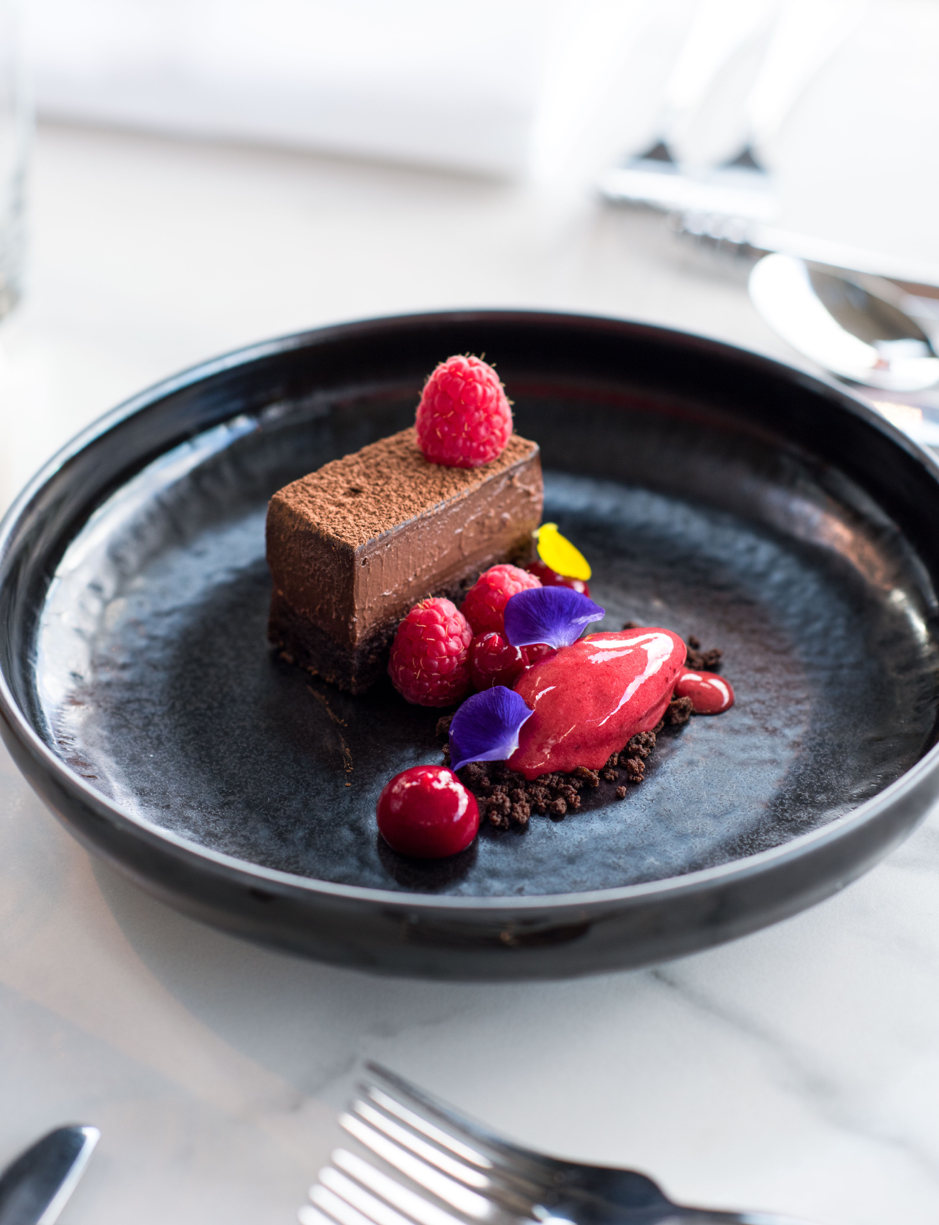 The evening started with fabulous Lighthouse G&Ts and an array of delectable canapes. We enjoyed fresh Trevally ceviche with lime, coconut cream, cayenne and shore sorrel, Steamed leeks with Windsor blue, sour cream and pine nuts on brioche rounds and Classic beef tartare. Appetites whetted for the main event we took our places at the tables and moved on to an entrée of Peppered First Light venison, liver and heart, lemon and caper butter. This sublime carpaccio was utterly fabulous and perfectly paired with the Vavasour Pinot Noir 2017, thanks to Foley Wines (and also for the other stunning wines). Next up was our first main of Greenlea beef fillet in a mushroom hotpot, with shitake cream. The tender, perfectly cooked grass-fed beef was matched with Te Kairanga John Martin Pinot Noir 2017. Our second main course consisted of Roast Ovation Lamb rack with a mouth-watering lamb cassoulet, tomato basil granita and crumbled feta and a glass of Mt Difficulty Bannockburn Pinot Noir 2017. Just when we thought we couldn’t squeeze in another bite the spectacular dessert arrived – Chocolate marquis with Maungatapere raspberries, intensely fabulous wild strawberry sorbet and a chocolate crisp with Mt Difficulty Ghost Town Syrah 2017 (every morsel was devoured).