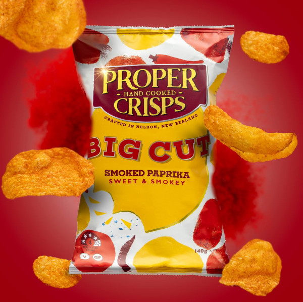 Glorious and blistery, Big Cut crisps are unpeeled, sliced big and hand-cooked low and slow for a ridiculously bigger satisfying crunch. Proper Crisps’ real foodie flavours include Marlbourgh Sea Salt with a finely ground spray of salt, Dill Pickle & Cider Vinegar that is out of this world dill-icious, Purple & Gold crisps with freshly ground cracked peppercorns and Smoked Paprika.