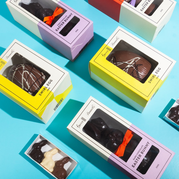 For an easy crowd-pleaser, you can’t go past Farro’s exclusive collaboration with Bennetts of Mangawhai. Back with slick new packaging, this sweet selection includes chocolate bunnies big and small, and an artful egg, all crafted with Bennetts of Mangawhai’s delicious chocolate, made using sustainably sourced cocoa.