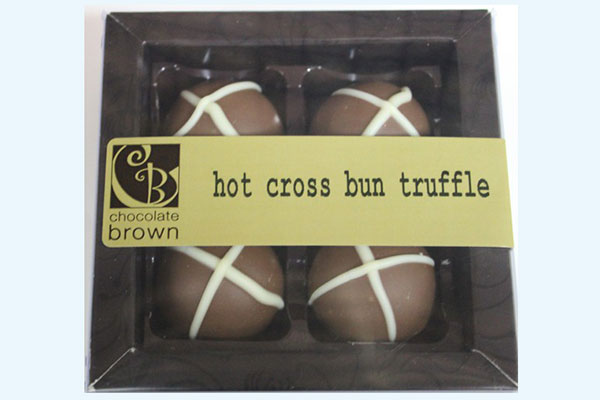 We love chocolate in our hot cross buns but how about hot cross bun flavoured chocolate? These truffles conveniently come in a box of four – the perfect bite-sized gift. They’re also convenient to keep all to yourself.