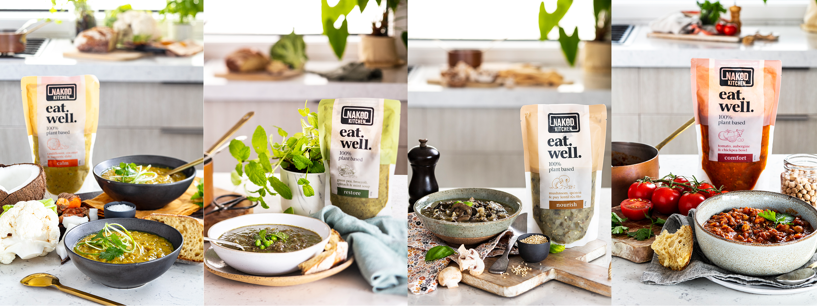 Comprising four delicious flavours – 'Restore' Green Pea, Broccoli, Spinach & Mint Soup; 'Comfort' Tomato, Aubergine & Chickpea Bowl; 'Calm' Cauliflower, Coconut & Turmeric Dahl; and 'Nourish' Mushroom, Quinoa & Puy Lentil Risotto – the meals are packed with nutritious ingredients designed to help Kiwis feel healthier and happier.