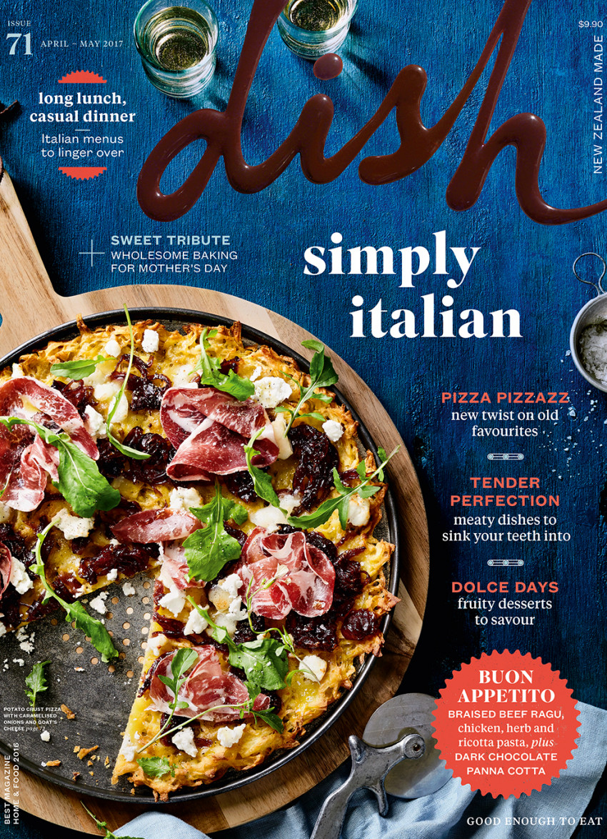 Dish’s annual Italian issue is dedicated to that small European country with a huge culinary reputation. This season, we prepare deliciously simple casual lunch and dinner menus to linger over, sink our teeth into tender meaty mains, find comfort in classic vegetarian fare and grab a slice of everybody’s favourite – pizza, made with inspired new bases using veges, nuts and alternative grains.