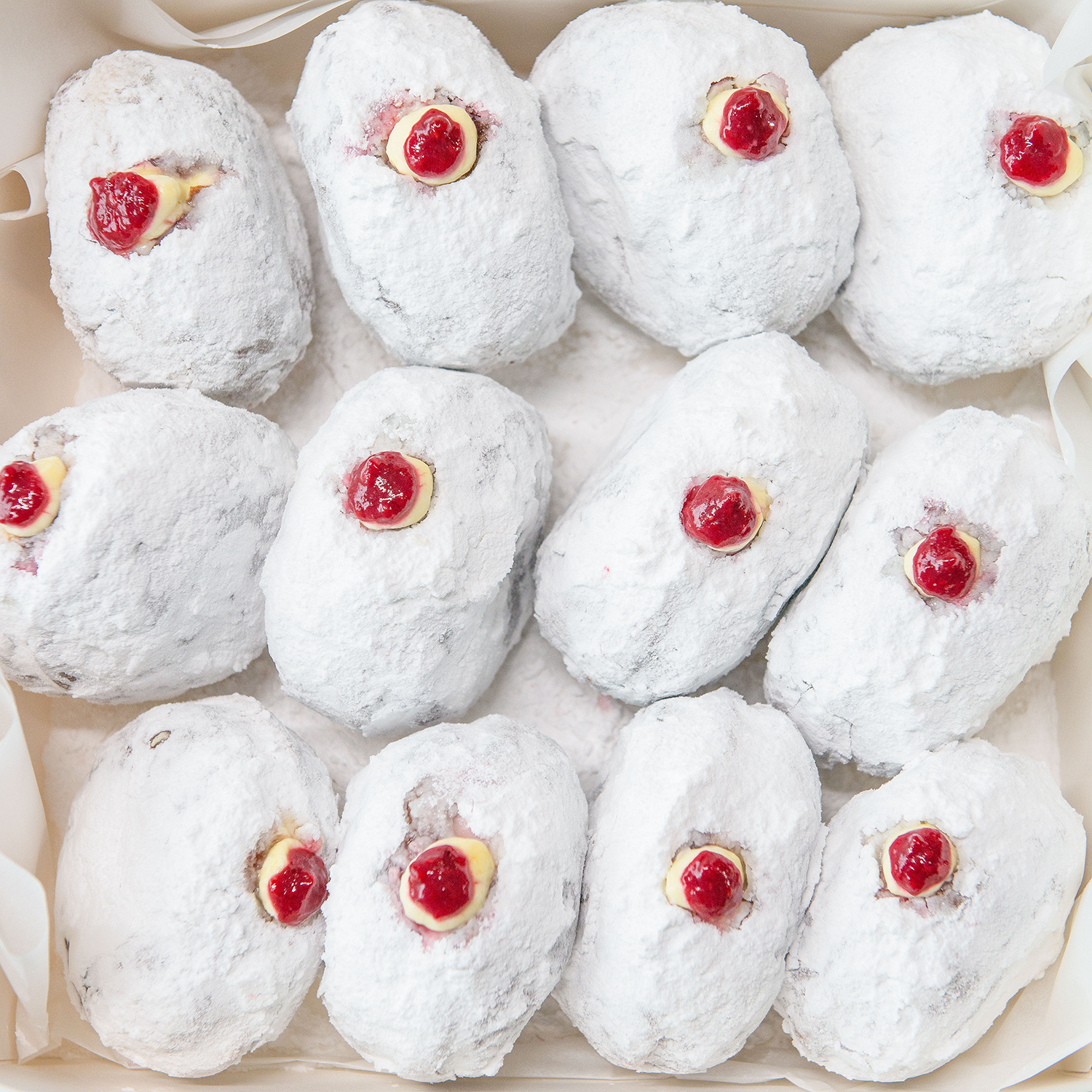 The jam-filled, icing sugar-coated confections that came in our door from Little & Friday garnered oohs and aahs from the team. They're angelic looking. And they taste just as good. They're so plump that if they weren't so good, I'd say share one between two. They're also lovely and soft and full of raspberry jam. They're classic and nostalgic. Little & Friday use fresh, free-range and organic produce and bake everything from scratch. You can taste that extra love.