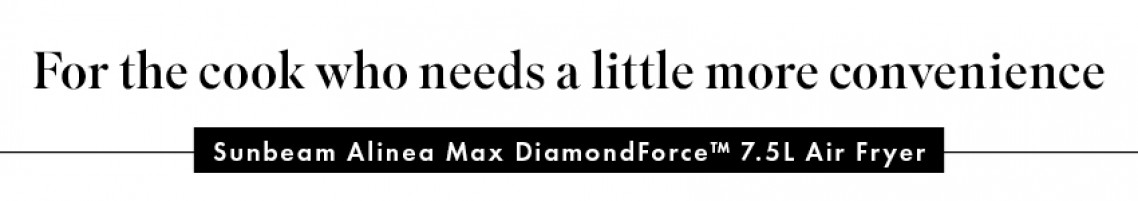 Wanting to help your time-poor loved one get some hours back? Behold Sunbeam’s latest and greatest Air Fryer! With an extra-large capacity, 10 cooking pre-sets and a large viewing window, the Alinea Max DiamondForce™ 7.5L Air Fryer offers the ability to serve healthy and tasty family-sized dinners — from whole roast chicken, baked potatoes, quick leftover reheats and so much more! Give the gift of lower-effort, healthier everyday cooking this Christmas! Available from leading retailers nationwide. Product Code: AFP4570DF. RRP: $399.99