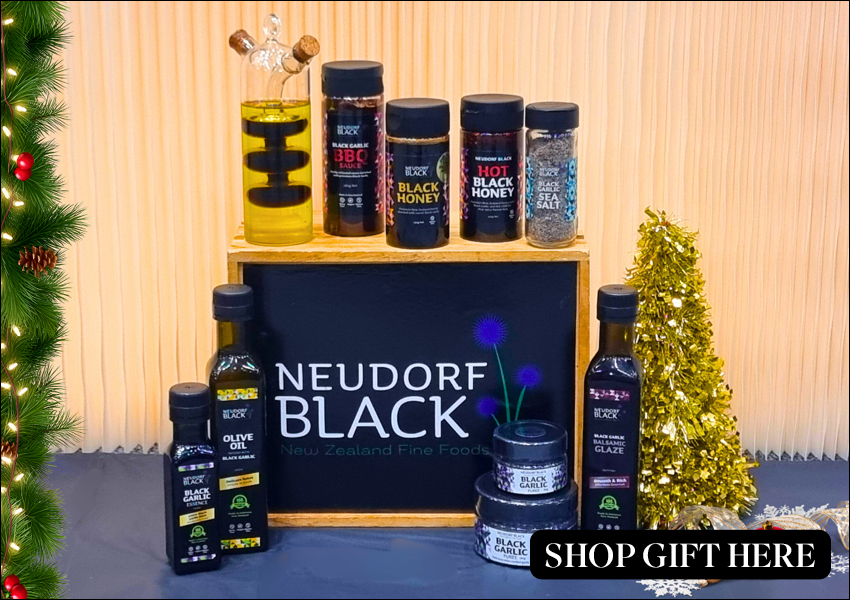 Neudorf Black delivers a truly unique experience for the discerning foodie. Their award winning range of black garlic essentials is gluten free, bursting with flavour and easy to use, from everyday cooking to festive feasts. Choose from beautifully curated gift bundles and stocking fillers, each showcasing the rich, complex depth of Aotearoa New Zealand made black garlic. With something for everyone, Neudorf Black makes an unforgettable gourmet gift this season. Visit neudorfblack.co.nz to explore the full range. RRP: from $13.95