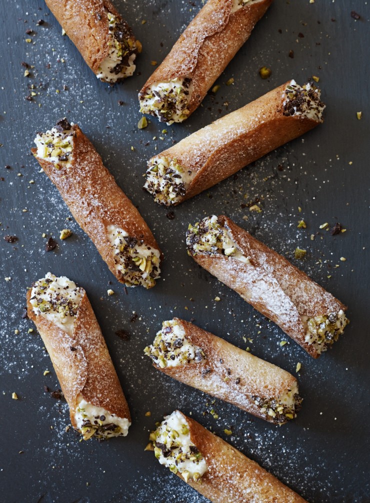Baked Cannoli with Whipped Ricotta, Chocolate and Pistachios