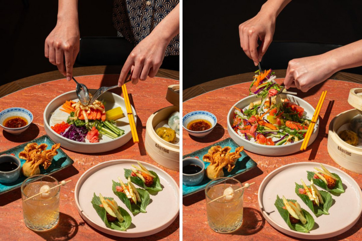 Cāntīng’s head chef drew inspiration from the tradition during his travels and made it his own at the restaurant. Rather than an annual celebration, Cāntīng offers the dish all year round. And instead of one person tossing the salad, Cāntīng encourages everyone at the table to grab their chopsticks and see who can toss the highest.