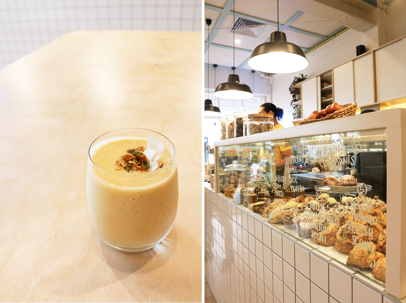 The Peaches and Cream Smoothie and a selection of counter food