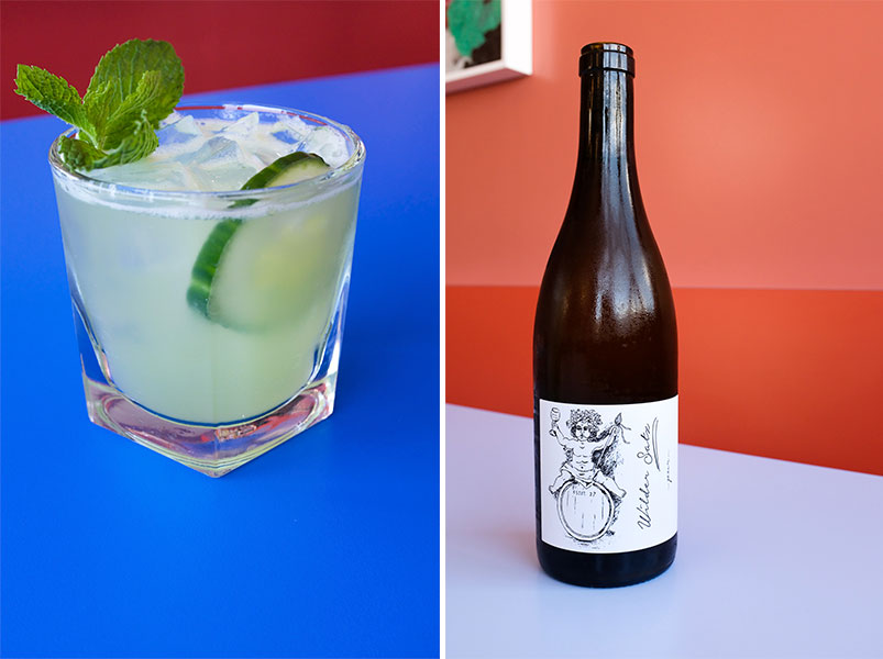 East Side cocktail, Weingut brand 'Wilder Satz' Orange wine from Pfalz, Germany.
