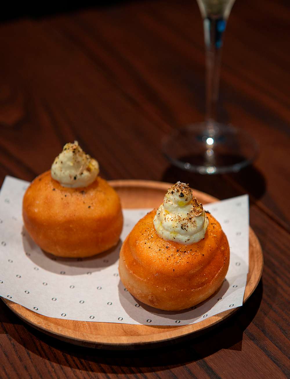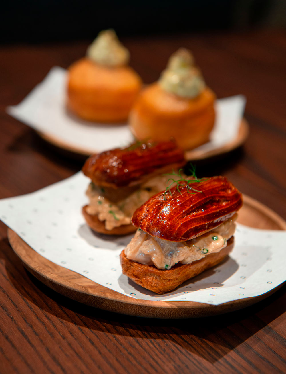 The menu was short, sweet, and reasonably inexpensive - avoiding both decision fatigue and pocket fatigue. The theme of the food is hard to categorise; it’s decadent but not showy fine food, expertly flavour matched and presented in beautiful yet familiar ways. For instance, among the smaller ‘treats’ you’ll find fried bread with stracchiatella presented as little doughnuts. They are doughy, with creamy centres with the slightest smattering of Szechuan pepper on top. The dark, golden-brown, biscuity little crayfish éclairs, too, look like they could be from a very fancy bakery - but with a savoury flavour twist. “Treats” is absolutely the perfect word for this section.