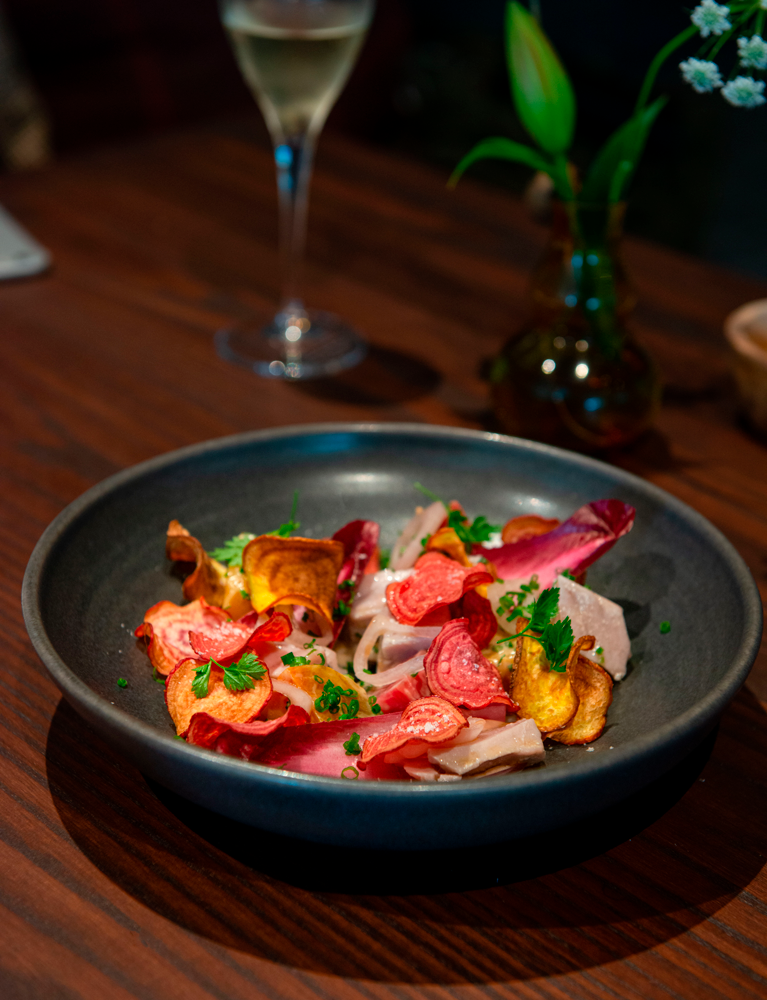 The starters are substantial enough to work as a light meal on their own. The Confit Yellowfin Tuna Endive Heart is surrounded in crispy little root vegetable chips and pickled onion. It's an unusual, fresh and piquant take on fish and chips with plenty of oomph.