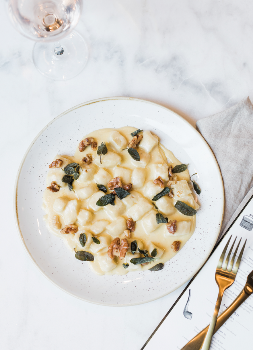 It’s really the perfect place to shop for furniture – to slowly scan the room as you linger over delicious food and consider each piece and how it might fit into your home. As owner (and co-director with his nephew Sergio Maglione) Antonio Crisci points out, it brings together the hospitality and retail experiences in perfect harmony. But it gets better. As we discovered, the food here is exceptional too. Among Claire’s favourite items on the menu were the goat cheese and fig crostini which she reckons are reason enough to visit L'Americano, more than the sum of their parts. The gorgeously soft and rich House-made Potato Gnocchi with Gorgonzola and Walnut (pictured at the top of this page) was also a treat. “That’s real gnocchi”, Claire remarked as she ate.