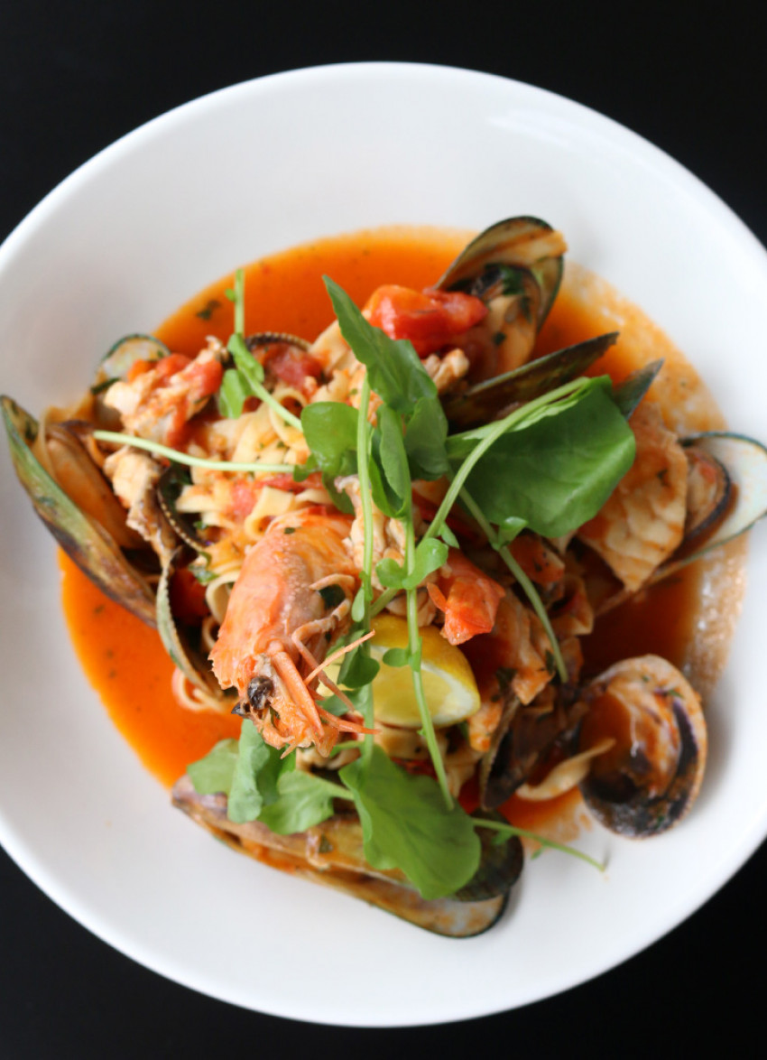 What starts with a crisp and equally punchy Negroni, sets the tone for an Italian feast of indulgent Crayfish Ravioli and seafood Tagliatelle – a melange of steamed mussels, clams and prawns in a tomato, chilli and white wine sauce.