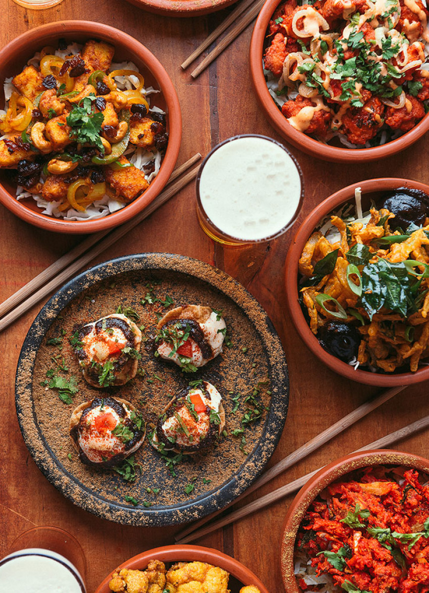 Alongside Onion Bhaji and Masala Fries (shoestring fries laced with spices) are unexpected additions that reflect the cultural diversity of India. Vege Dumpling Manchurian – twice-fried moreish morsels made from potato, ginger and onion – are evidence of the Chinese food vendors found “on just about every street corner”. The Indian-spiced Japanese-style chicken is a favourite of Sammy’s. “I love karaage, so we call ours Kurryaage,” he laughs.