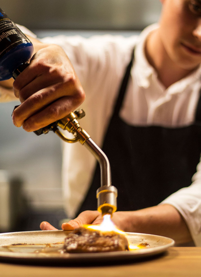 The pass or bar is one of several cleverly divided areas designed to ensure diners enjoy a different restaurant experience, every time you visit. Restaurants can be noisy during service, one particular sound that will make you stand to attention is the ding of the pass bell. Here, the annoying noise of the bell is replaced by a clever, calming light that Shepherd turns on and off, it is this attention to detail throughout the restaurant that ensures the atmosphere here is calm and relaxed.