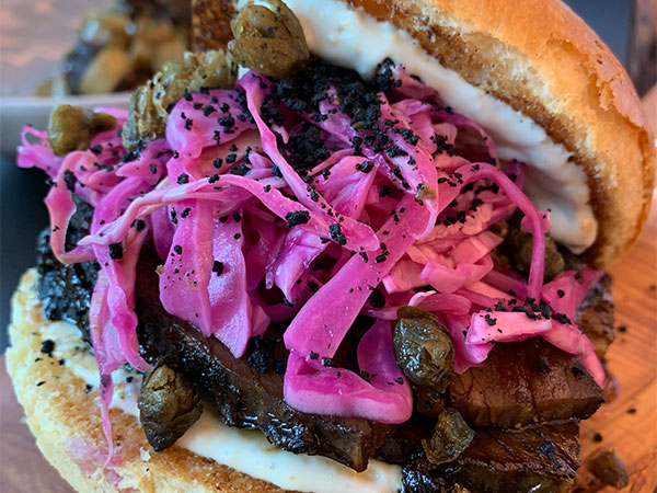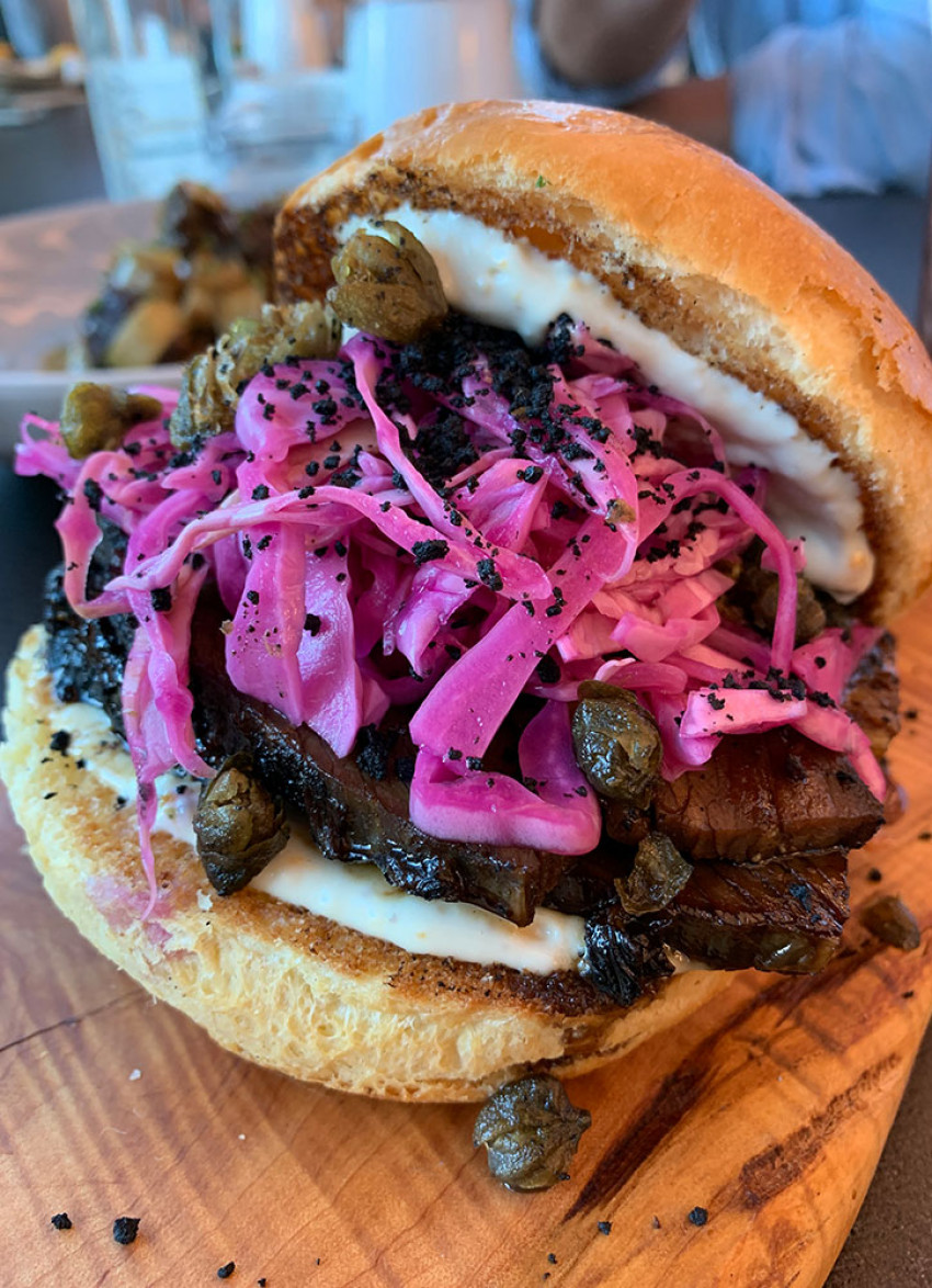 Next up was the Beef Brisket Burger, horseradish ranch and fries. As the first meat-based dish, we were intrigued, but if there’s anything that the team at Newbie do well, it’s slow-cooked meat. Rubbed in Atomic Coffee, the beef is then cooked through the night ready to be served the next day. “We use dehydrated capers and olive to give more of an intense flavour,” Roger revealed. It’s encased in soft, fresh bread and served with crispy, yet fluffy fries. My partner, who loves meat, was left feeling incredibly happy.