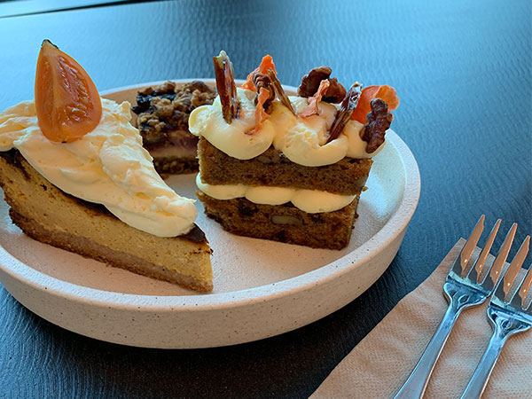 Post-lunch and full to the brim, Roger guided us to the tea menu. On offer was a selection of delicious Zealong beverages. We chose Sweet Amber and Green Tea, which arrived in small tea pots alongside a trio of cakes fresh from the cabinet. It was an idyllic end to a Sunday afternoon, and we'll definitely be back.