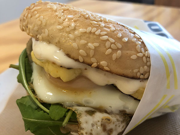 But, for me, the most memorable dish was the Brekkie Bagel with halloumi, fried egg, rocket, (more) cheese and punchy sauces including kasundi and aioli. It received bonus points for the fresh, good quality bagel.