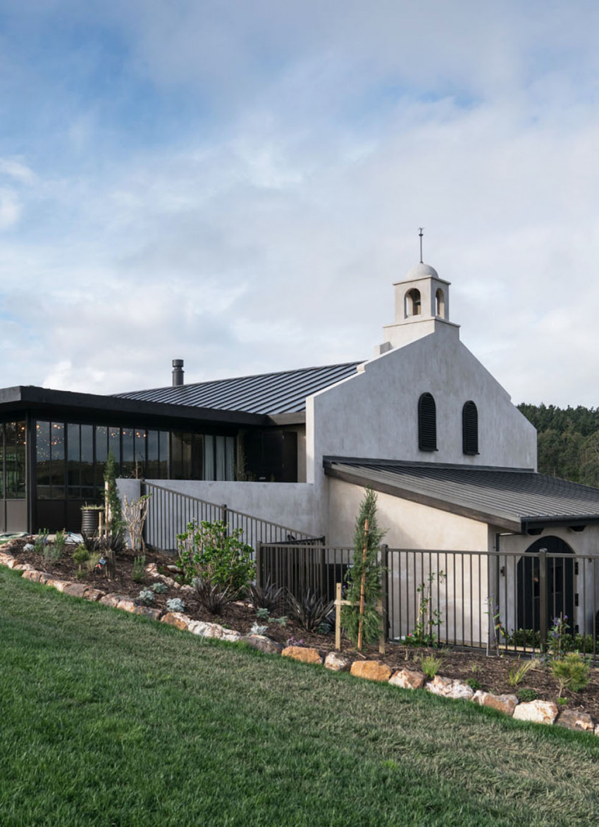Upon arrival, it's hard not to be captivated by the Onetangi Valley vista alone. Sprawling panoramas and wide-open spaces flooded with light, lead out to a courtyard dotted with clean and classic features and bountiful Côtes du Rhône-style grape varieties.