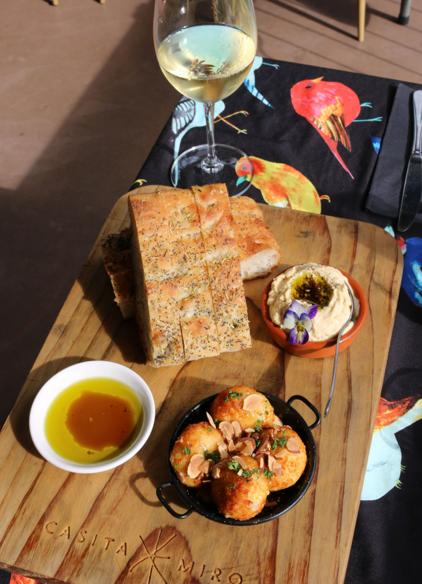 My guide Nicky and I sat down to a fabulous morning tea with a glass of Casita Miro’s Albariño wine, a gorgeous dry summer wine which went down beautifully alongside our platter of freshly baked foccacia bread and the star of the show, the goat’s cheese croquettes. Crisp and crunchy on the outside, one bite into these little beauties triggers an explosion of salty, creamy goat’s cheese in your mouth. I’m not usually one for double dipping but when you mix it with the honey and almond dressing there’s simply no avoiding it. Table manners be damned!