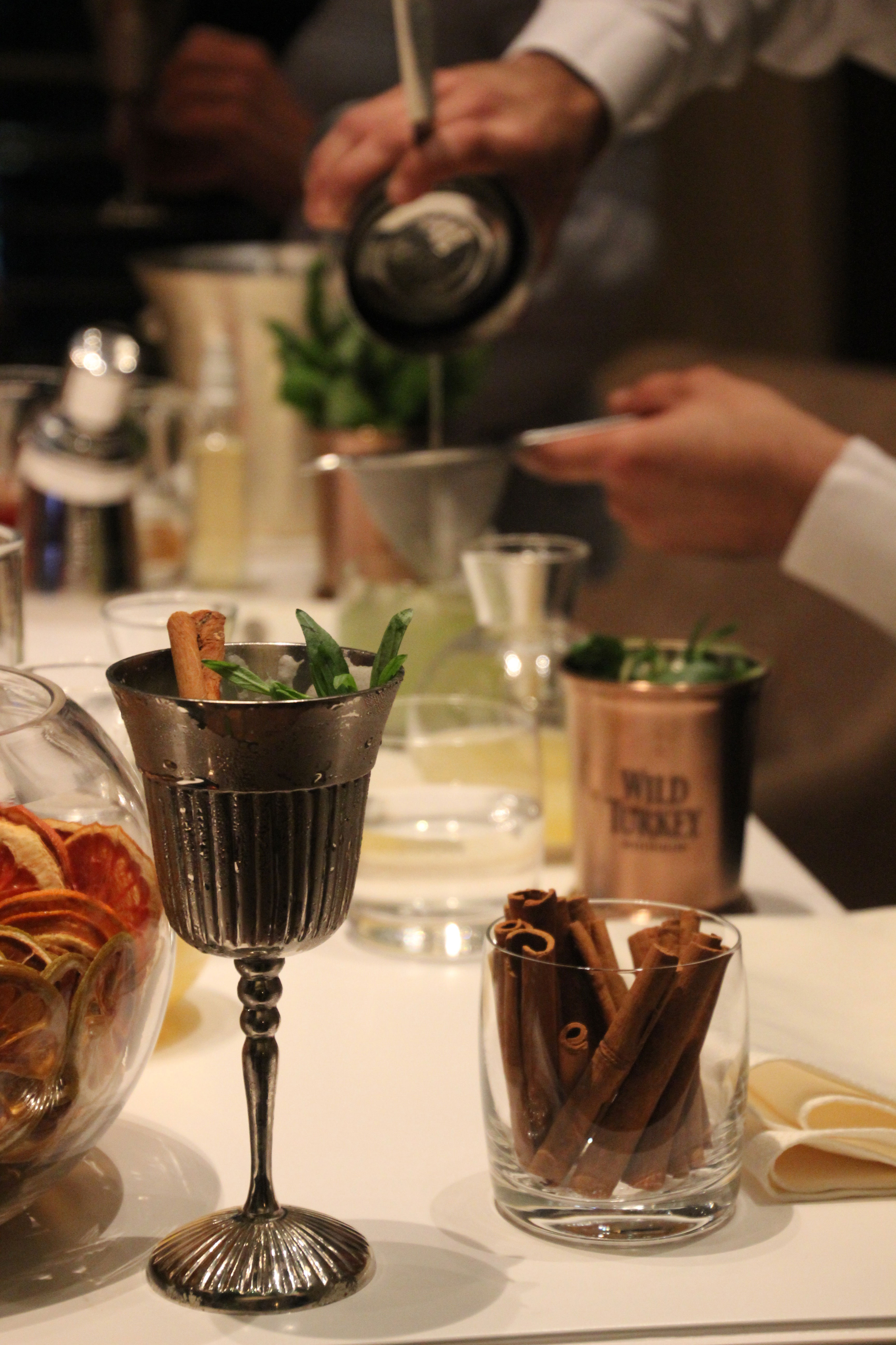 Shake, fine strain and garnish with a thyme sprig and cinnamon stick.