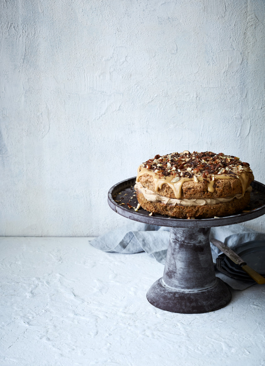 All the flavours of a tiramisu are combined in this delicious, moist cake. Brushing with alcohol and topping it with a coffee glaze transforms it into a stunning dessert.