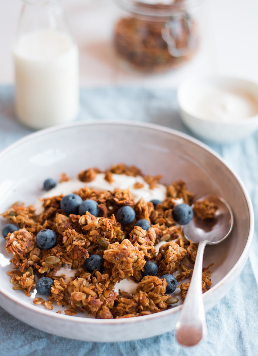 Serve with yoghurt, milk and seasonal fresh fruit. Keep muesli in an airtight container.