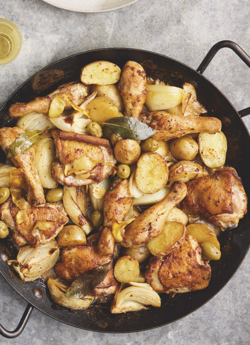 Baked Chicken with Lemon Potatoes, Green Olives and Oregano