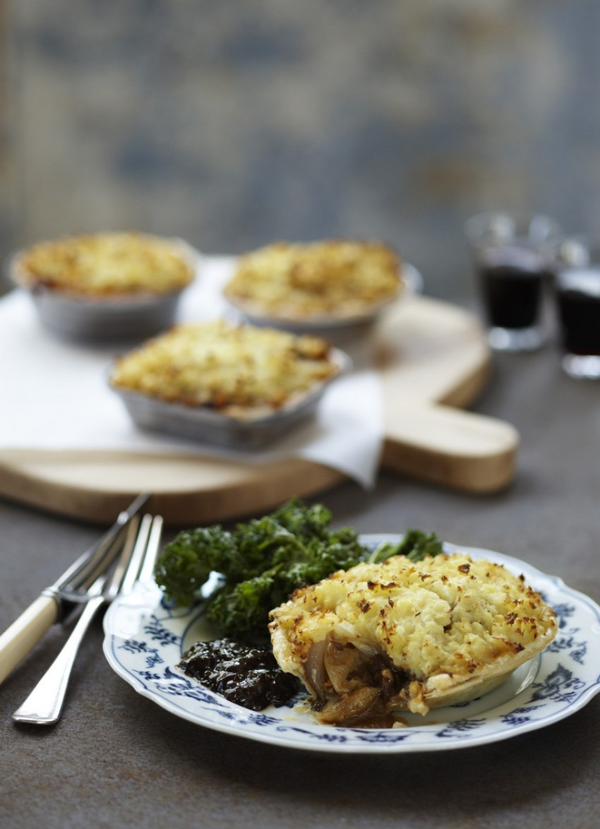 Beef and Caramelised Shallot Pies with Cauliflower Tops