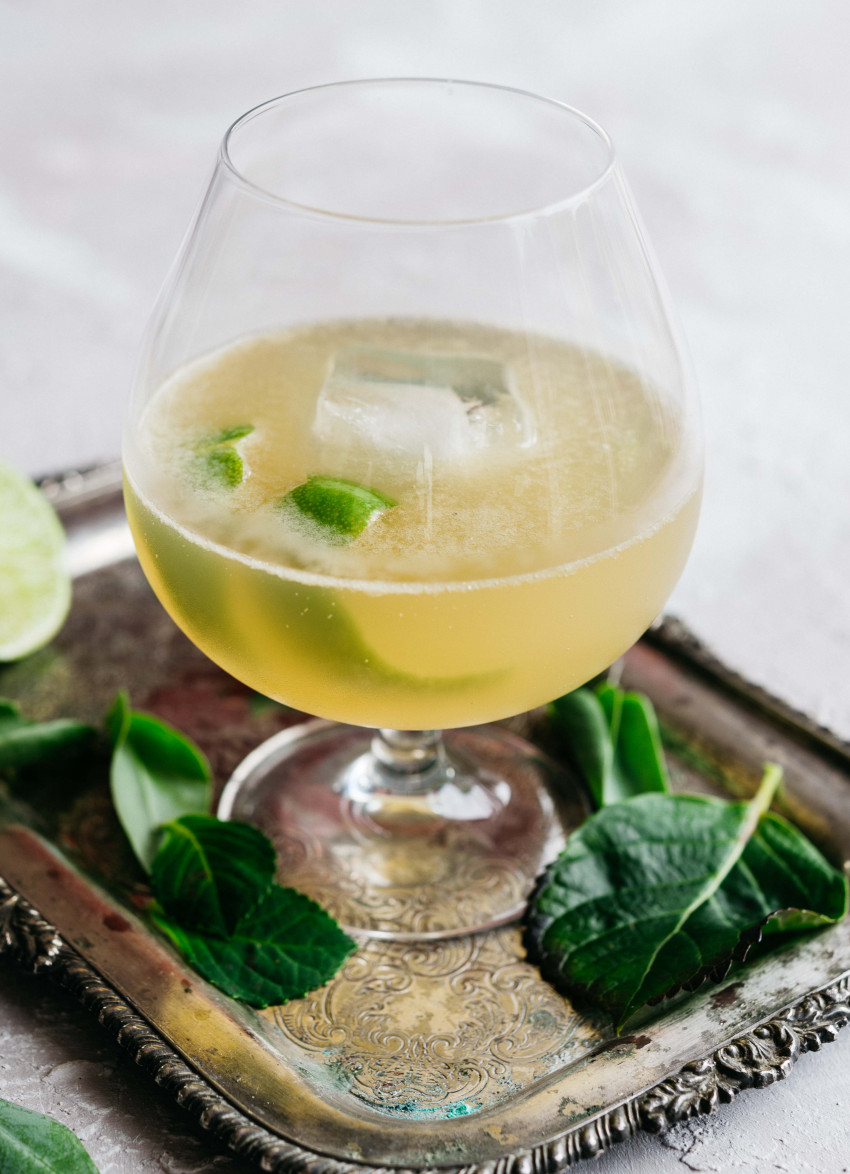 Place a large cube of ice in a glass. Strain the whiskey and lime mix into the glass.