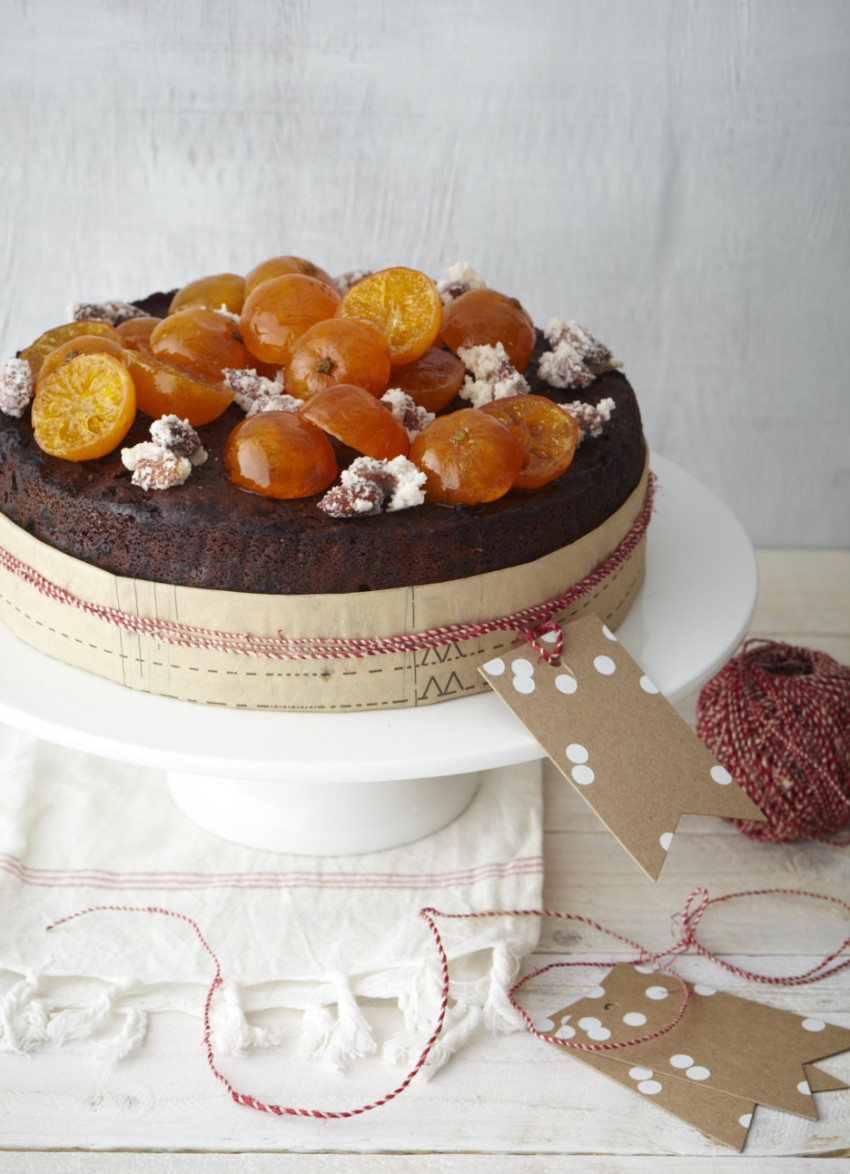Combining all my favourite flavours results in one fabulous cake. With alcohol-infused fruits, spices, dark chocolate and crunchy almonds this is not your traditional Christmas cake!