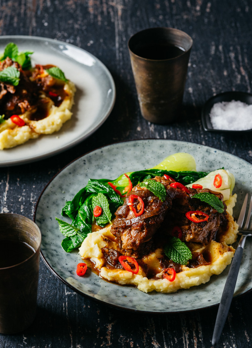 Cover with a piece of baking paper then foil and seal tightly. Bake for 4–6 hours or until the meat is extremely tender and will easily pull apart with a fork. I served the lamb with a parsnip and potato mash and hot, cooked bok choy.