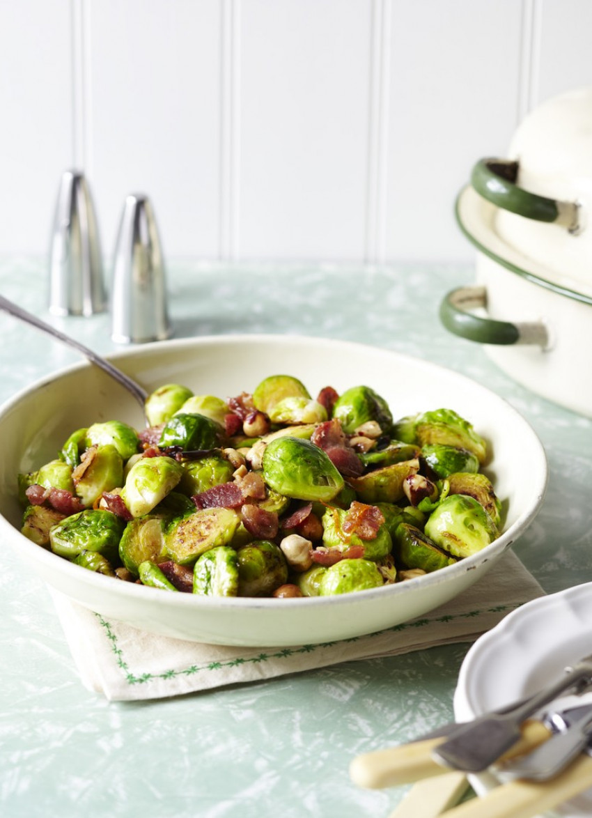 Brussels Sprouts with Bacon, Orange and Hazelnuts