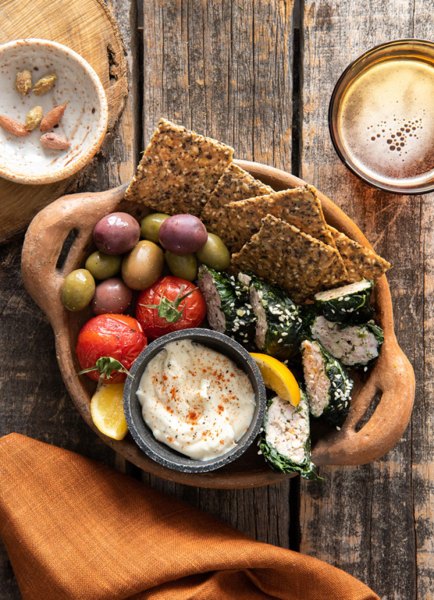 Large silverbeet leaves make a fantastic alternative to wrapping these in pastry. We’ve served them as a mezze plate with roasted vine tomatoes, assorted olives, crisp breads and garlic aioli. Great served warm or at room temperature.