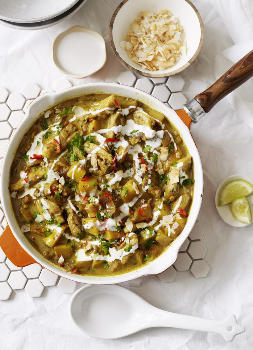This easy chicken curry is delicious served with a bowl of cooked green beans and Coriander and Spring Onion Flatbreads from the recipe for Beef Kebabs with Coconut Relish.